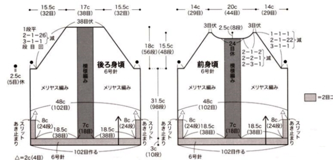 ถักจากล่างขึ้นบน วนวงกลม จนได้ขนาดความสูงตรงใต้รักแร้ (ปรับความสูง ความกว้างได้ตามชอบ) แบ่งงานเป็นชิ้นหน้า และชิ้นหลัง ถักชิ้นหน้า เ...