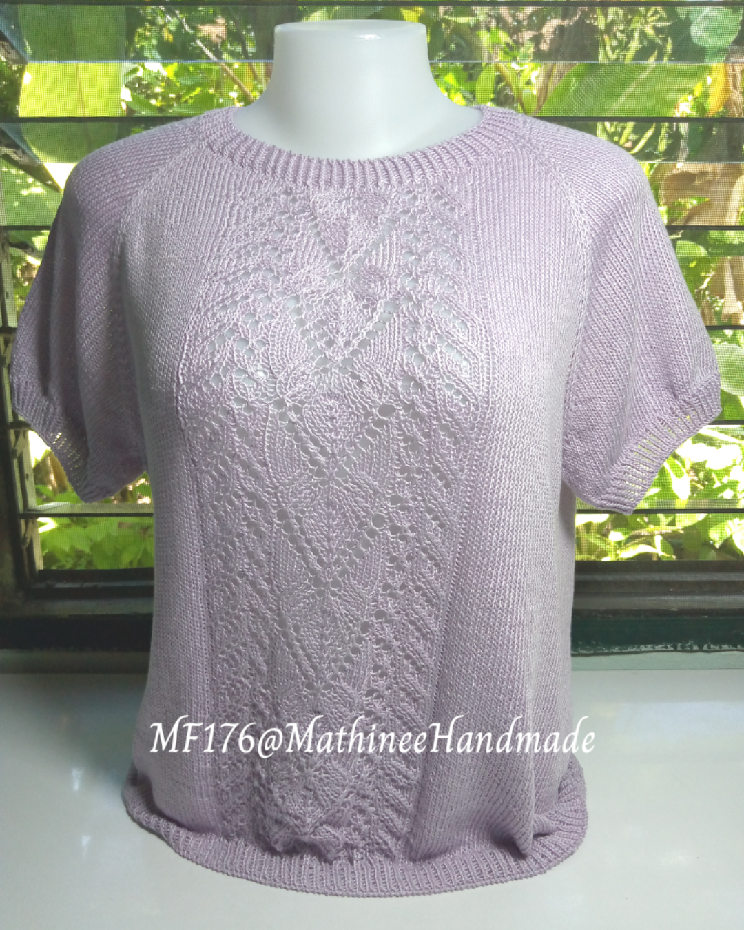 MF176 เสื้อนิตติ้งถักจากคอแยกสี่มุมแต่งลายด้านหน้า Knitting Summer Blusa Topdown @Mathineehandmade ,MF184