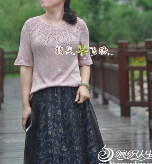 เสื้อนิตติ้งถักจากคอวนวงกลมขยายลาย